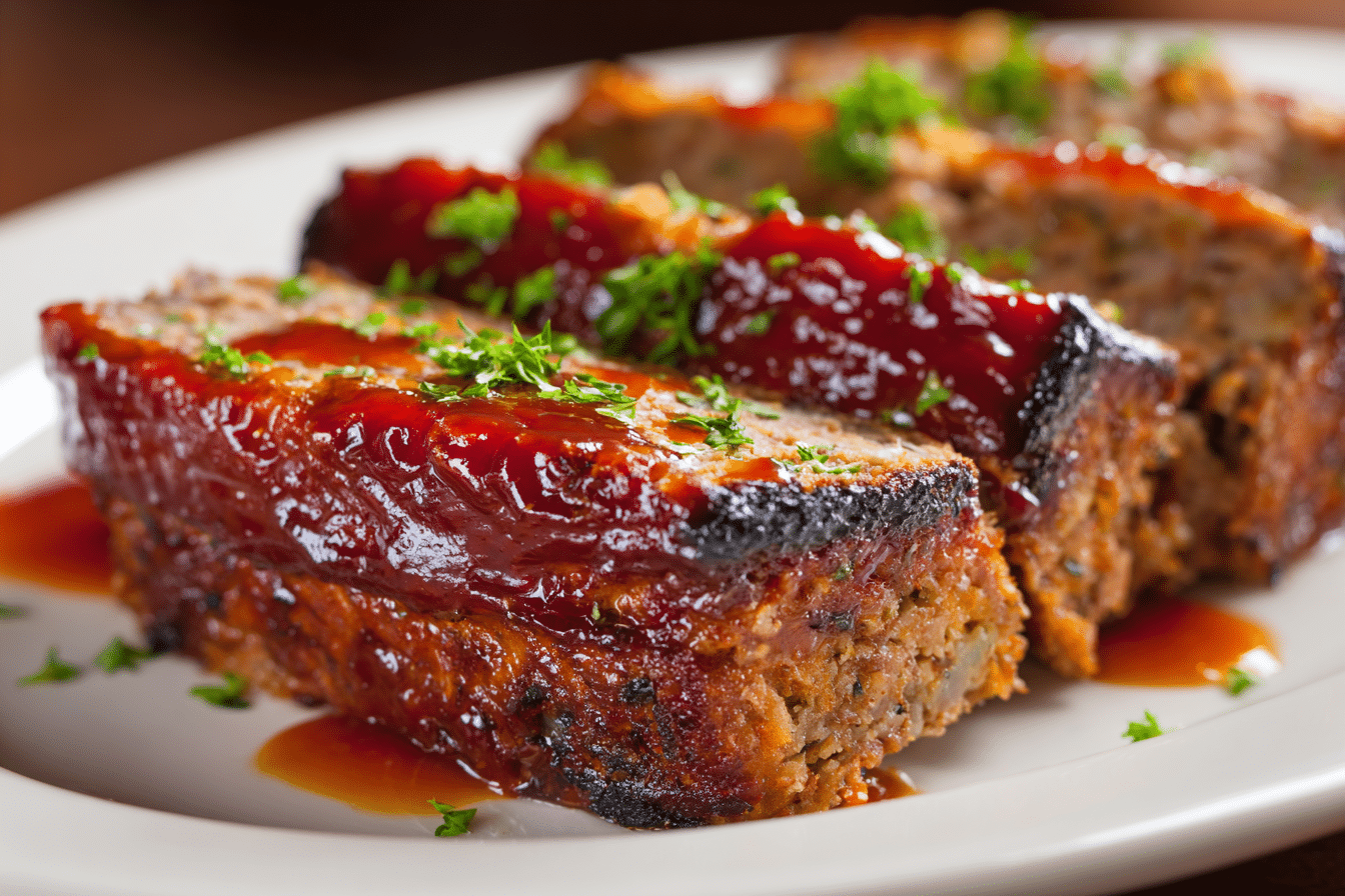 A mix of ketchup, brown sugar, and vinegar is brushed on top and caramelizes during baking, giving that sticky-sweet crust everyone loves.