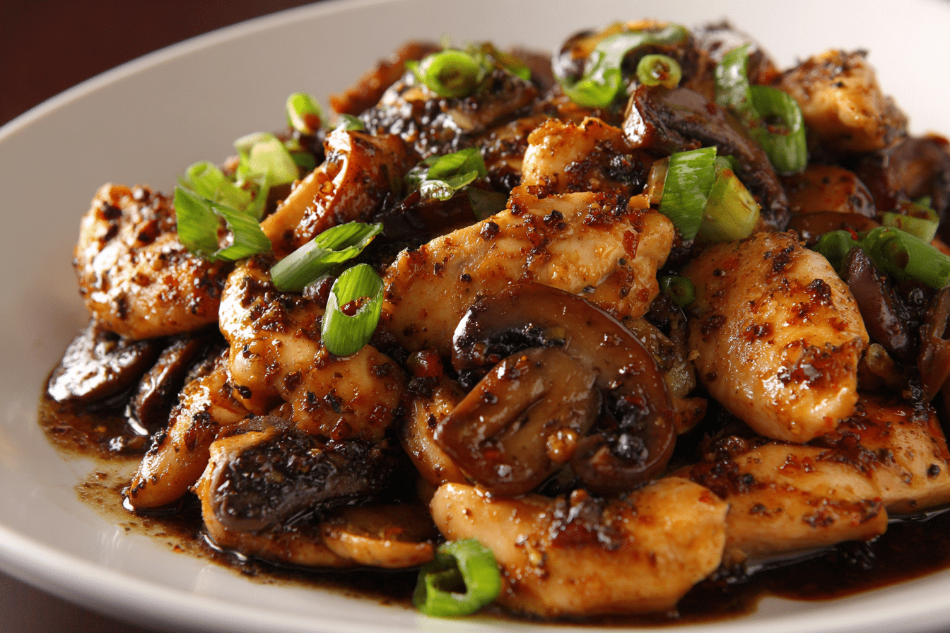 A bold and savory stir-fry featuring tender chicken, mushrooms, and a black pepper sauce. Quick, satisfying, and perfect over rice.