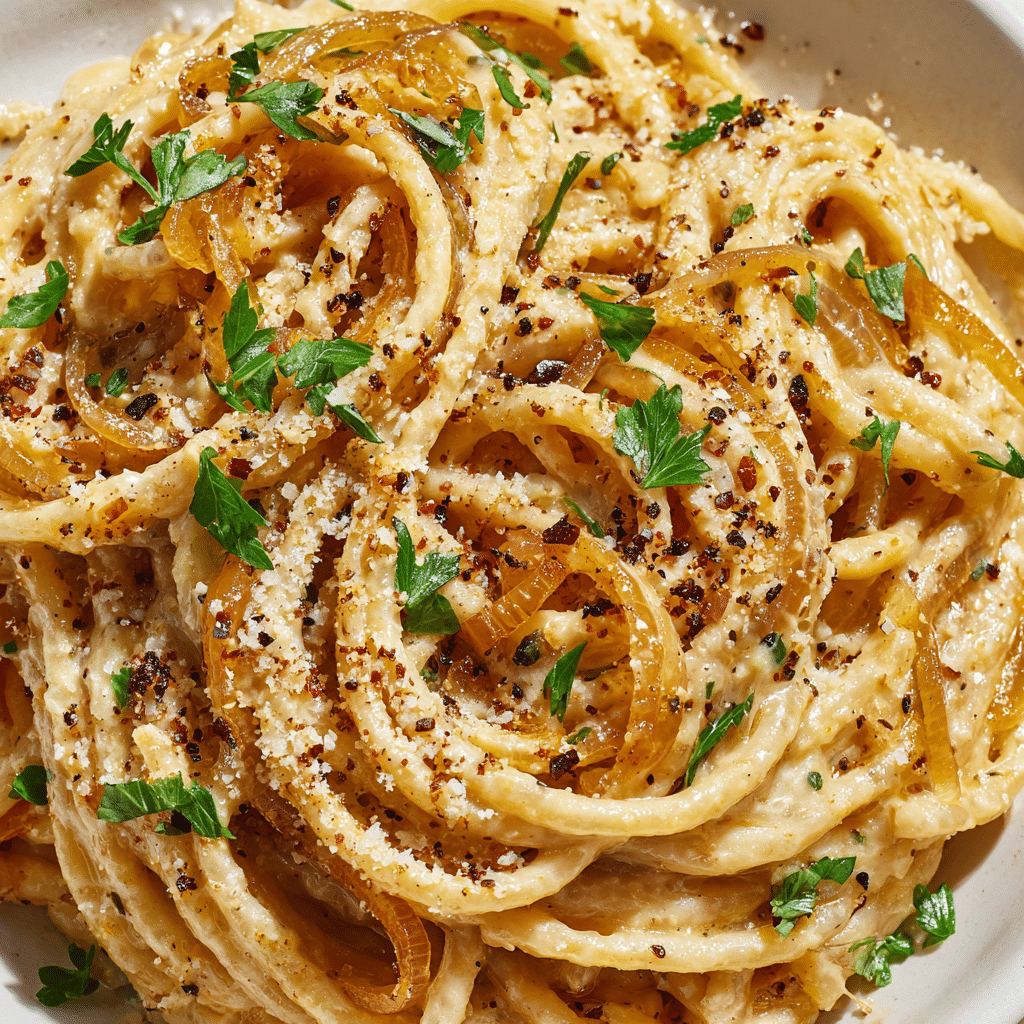 Creamy Vegan Caramelized Onion Pasta – Decadent, Dairy-Free Comfort
