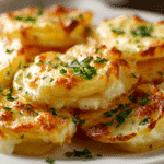Few side dishes say “holiday comfort” like a bubbling dish of Cheesy Au Gratin Potatoes. Rich, golden, and irresistibly creamy, this beloved potato bake is a Thanksgiving staple—and for good reason. With layers of thinly sliced potatoes smothered in a velvety cheese sauce and baked until crisp on top and fork-tender inside, it’s the kind of dish that earns silence around the dinner table.