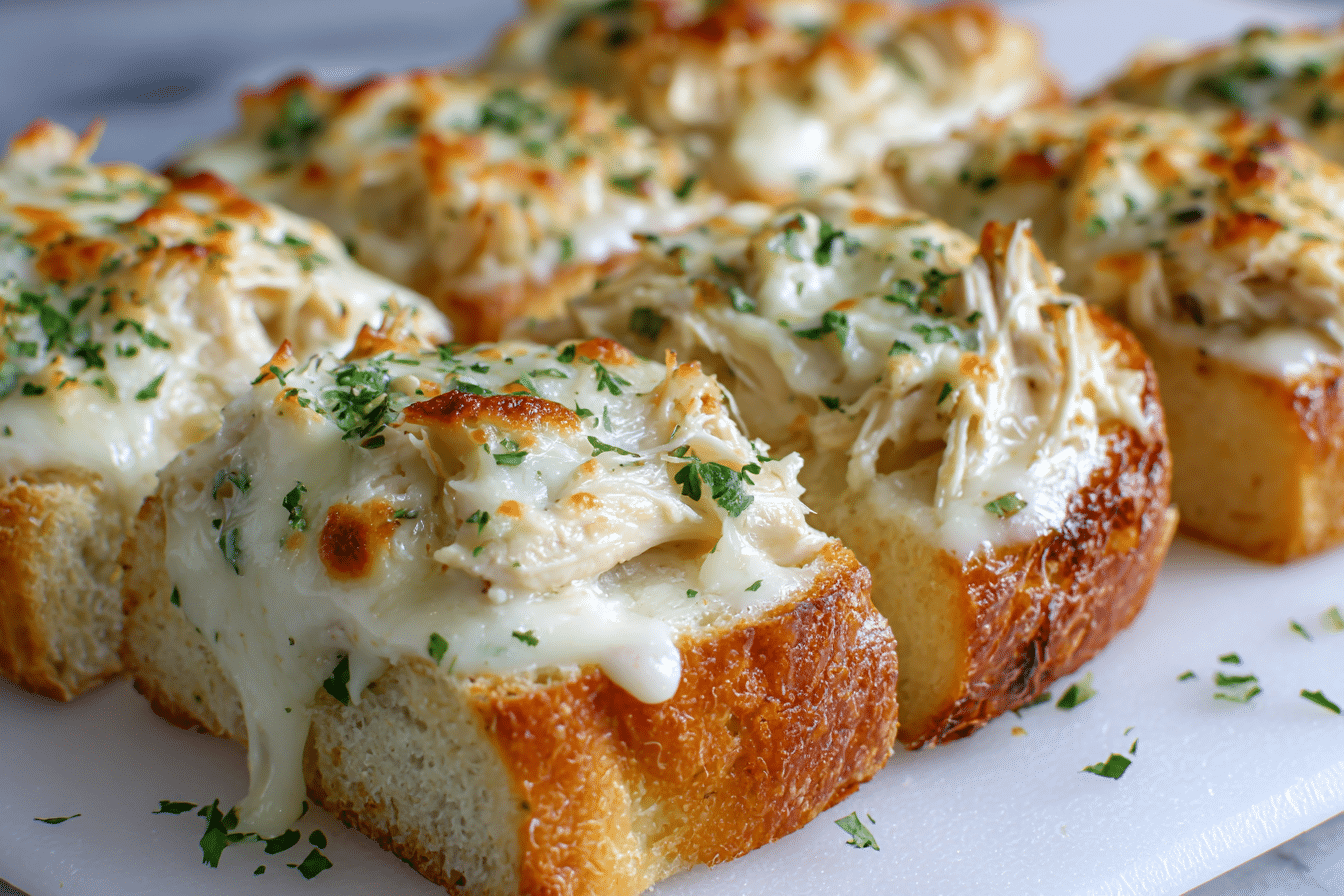 Creamy, cheesy Chicken Alfredo Garlic Bread combines tender shredded chicken, rich Alfredo sauce, and melted mozzarella on crispy, garlicky French bread for an irresistible comfort dish.