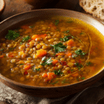 A warm and nourishing one-pot lentil soup packed with vegetables, herbs, and protein-rich legumes—perfect for meal prep or cozy dinners.
