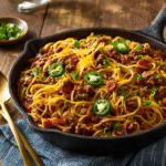 Cowboy Spaghetti is a smoky, cheesy twist on classic pasta—featuring bacon, ground beef, and a chili-spiced tomato sauce. Comfort food with Western flair, ready in under 40 minutes.