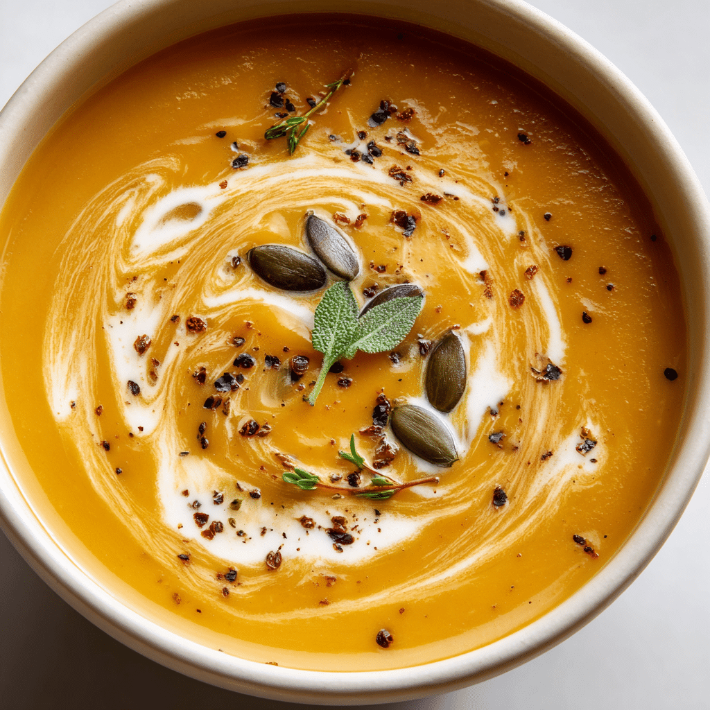 Rooted in North American and European traditions, butternut squash soup pairs seasonal produce with warming spices and rich textures, offering a satisfying balance between health and indulgence. This version is rich and velvety without being heavy, with roasted squash as the star, supported by aromatic onions, garlic, and a splash of cream (or coconut milk for a dairy-free twist).