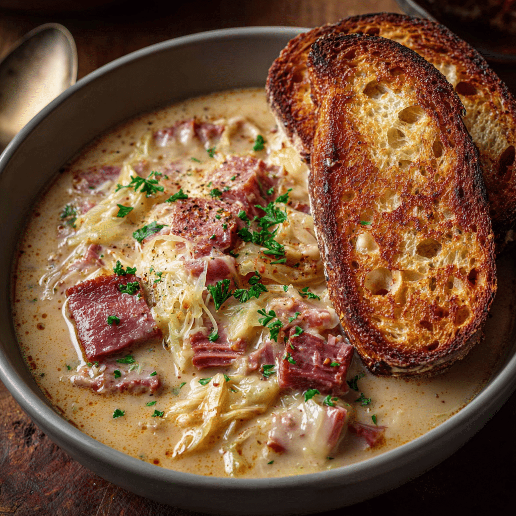 All the bold, tangy, and creamy flavors of a Reuben sandwich transformed into a rich, comforting soup. Perfect for cold nights, leftover corned beef, or deli-style cravings.