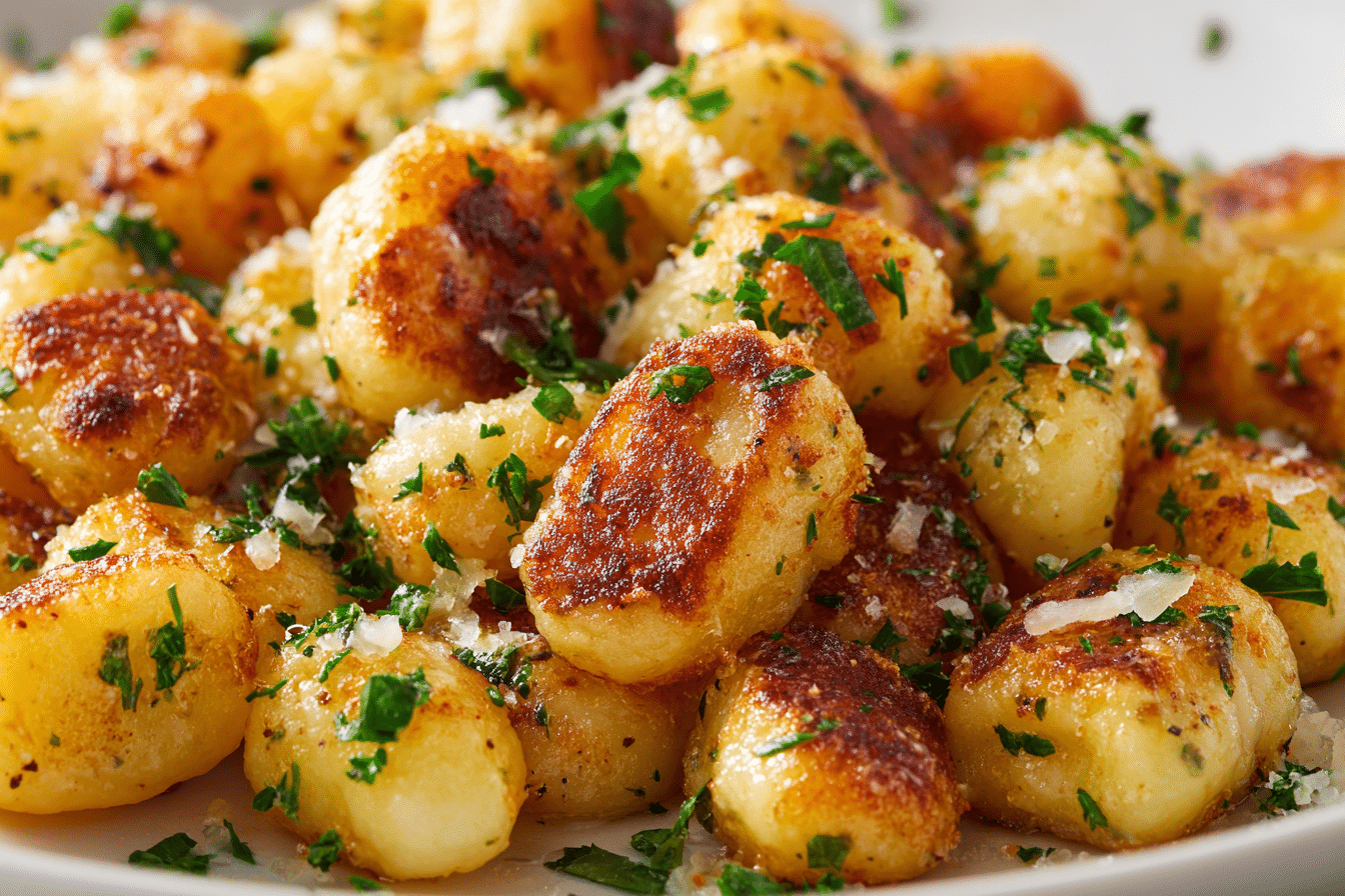 Transfer the crispy gnocchi to a serving bowl and sprinkle with fresh herbs. You can also add a drizzle of balsamic glaze or serve with dipping sauces like marinara, pesto, or garlic aioli.