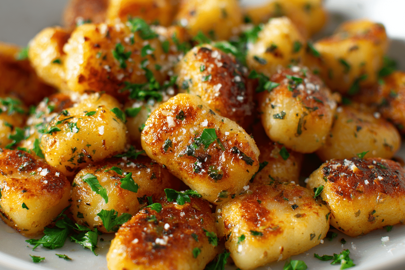 Transfer the crispy gnocchi to a serving bowl and sprinkle with fresh herbs. You can also add a drizzle of balsamic glaze or serve with dipping sauces like marinara, pesto, or garlic aioli.