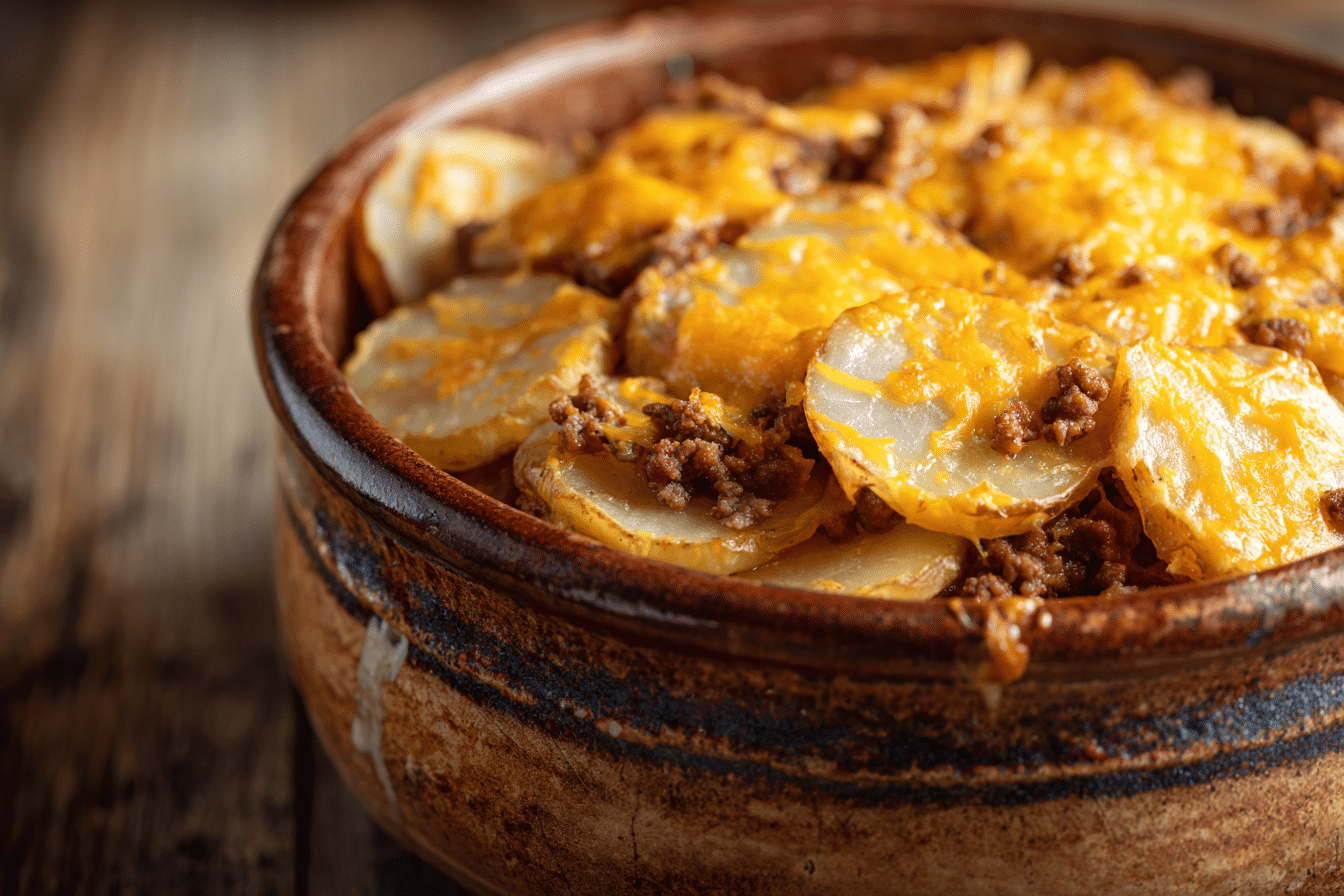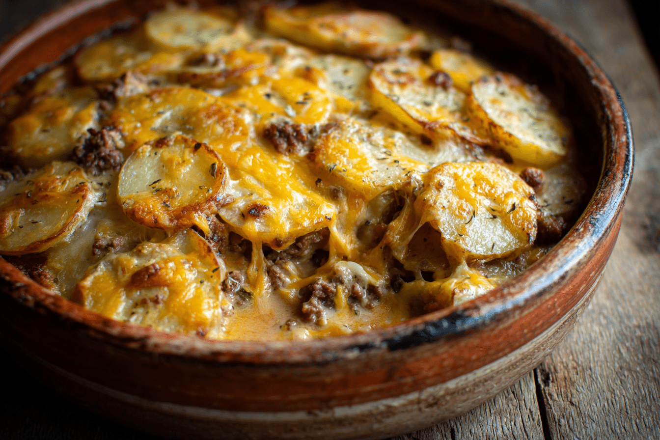 PrintA creamy, layered slow cooker casserole made with seasoned ground beef, tender potatoes, and melty cheddar cheese. A hearty, no-fuss dinner perfect for busy nights.