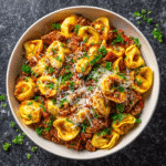 Looking for a hearty, cheesy, satisfying dinner that comes together in one skillet? This Easy One-Pan Beefy Tortellini Bake is packed with savory ground beef, tender cheese tortellini, and a rich tomato sauce—all finished with a melty layer of mozzarella cheese. It’s the ultimate weeknight family dinner: minimal prep, quick cleanup, and crowd-pleasing flavor in every bite.