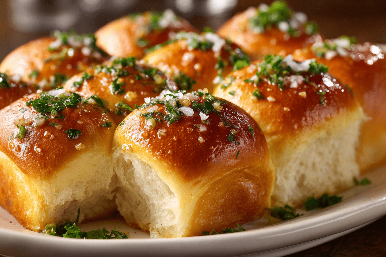 Fluffy homemade bread rolls brushed with garlic herb butter—soft, buttery, and perfect for every dinner table.