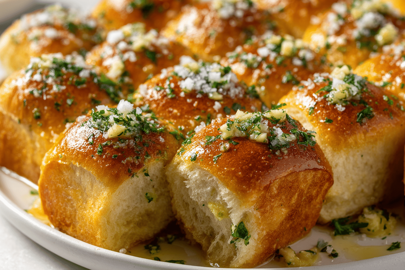 Fluffy homemade bread rolls brushed with garlic herb butter—soft, buttery, and perfect for every dinner table.