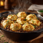 Looking for the ultimate comfort food that’s budget-friendly and perfect for a cozy night in? Ground Beef and Dumplings is your answer. This one-pot wonder combines savory, well-seasoned ground beef with fluffy, buttery dumplings simmered in a rich, beefy gravy. It’s satisfying, simple to make, and packed with flavor—like a mashup of a rustic beef stew and a pot pie topping.