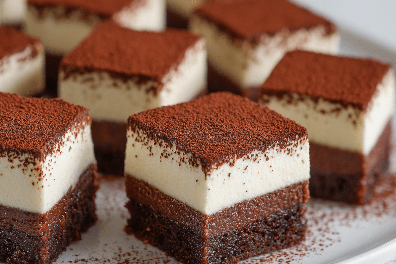 These tiramisu brownies are a rich dessert mashup of fudgy chocolate base, creamy mascarpone layer, and a bold espresso soak — finished with a dusting of cocoa for the perfect finish.