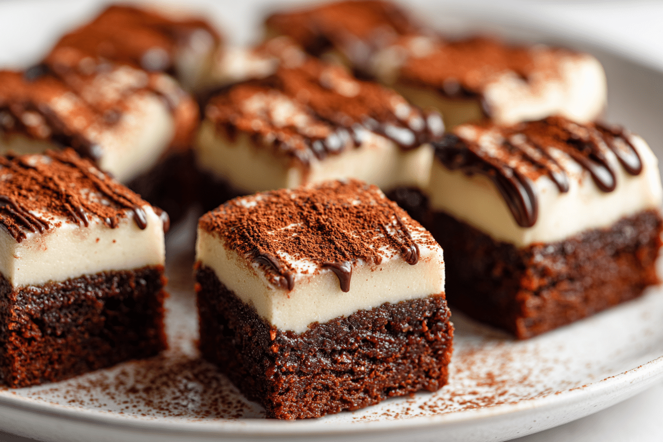 These tiramisu brownies are a rich dessert mashup of fudgy chocolate base, creamy mascarpone layer, and a bold espresso soak — finished with a dusting of cocoa for the perfect finish.