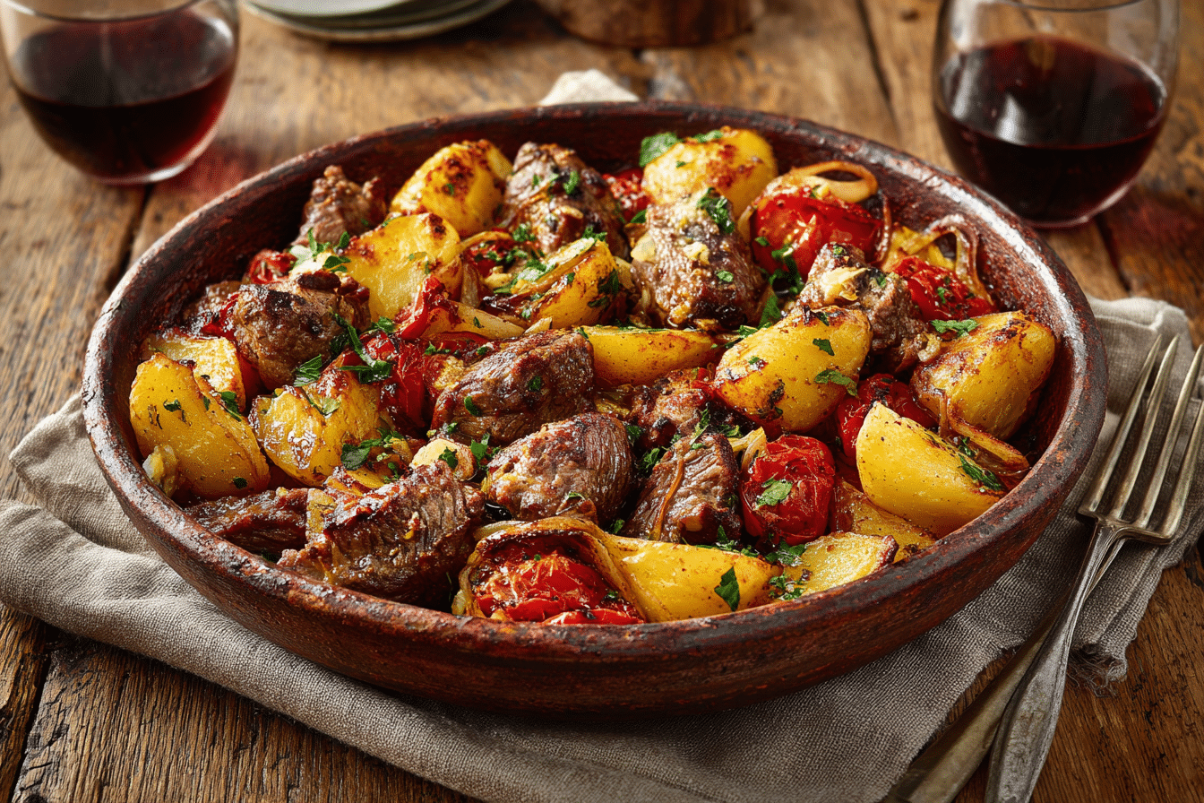 Cypriot Lamb Tava is a rustic, slow-cooked dish that speaks the language of home cooking — fragrant, tender, and full of Mediterranean soul. This traditional recipe hails from the villages of Cyprus, where lamb is gently baked with potatoes, tomatoes, and plenty of herbs in a clay pot or deep tray, allowing the flavors to slowly meld into something extraordinary.