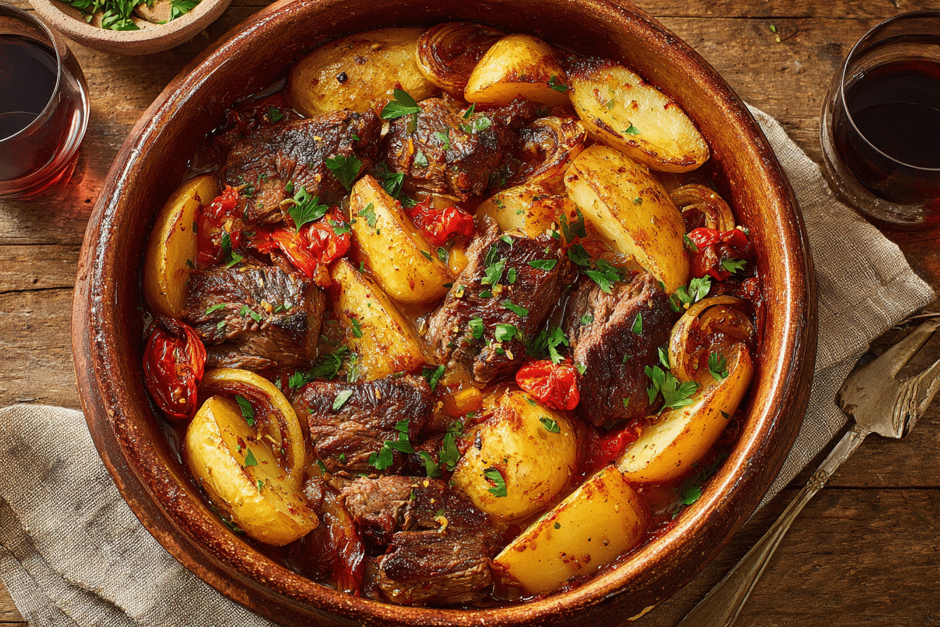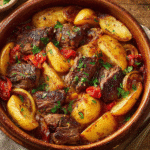 Cypriot Lamb Tava is a rustic, slow-cooked dish that speaks the language of home cooking — fragrant, tender, and full of Mediterranean soul. This traditional recipe hails from the villages of Cyprus, where lamb is gently baked with potatoes, tomatoes, and plenty of herbs in a clay pot or deep tray, allowing the flavors to slowly meld into something extraordinary.