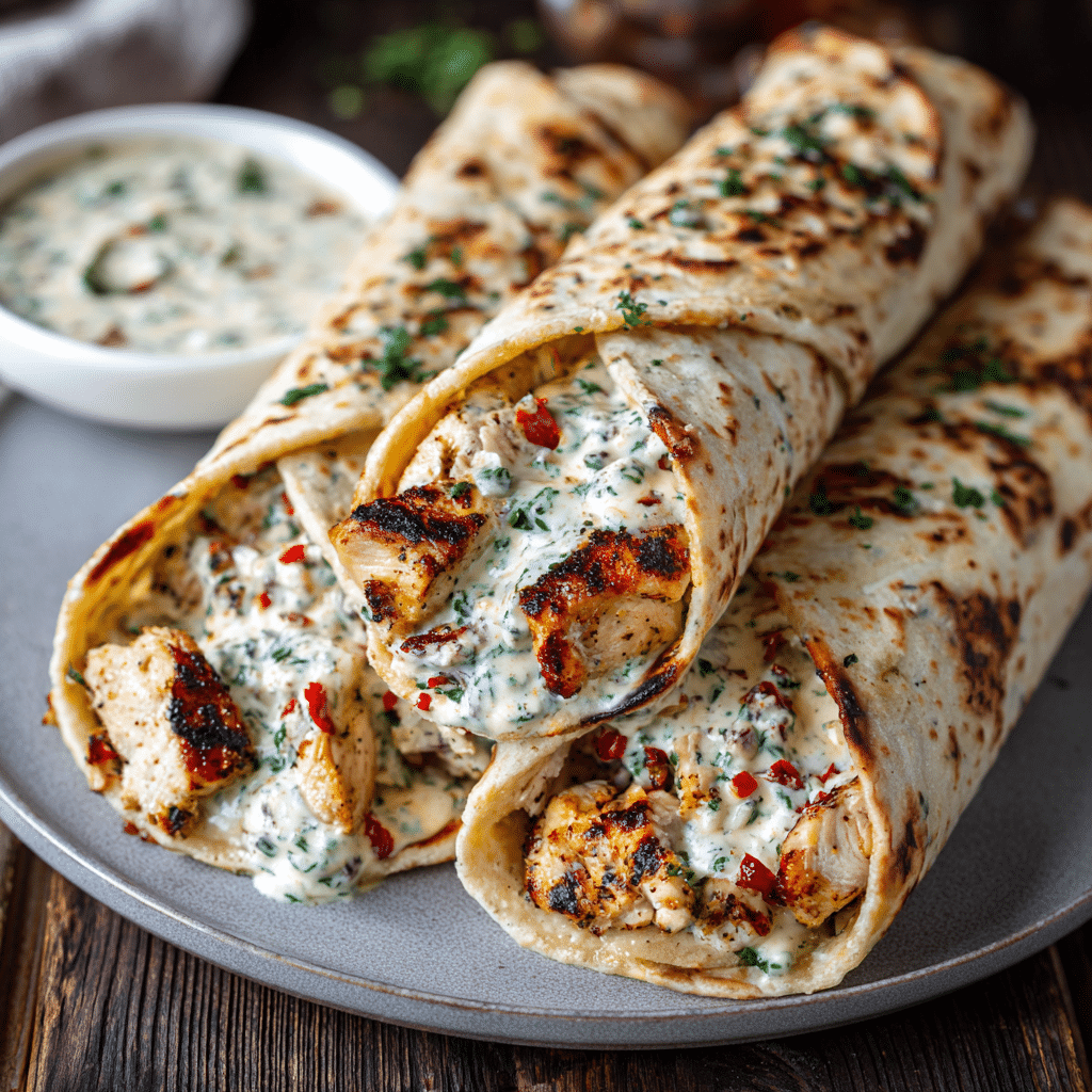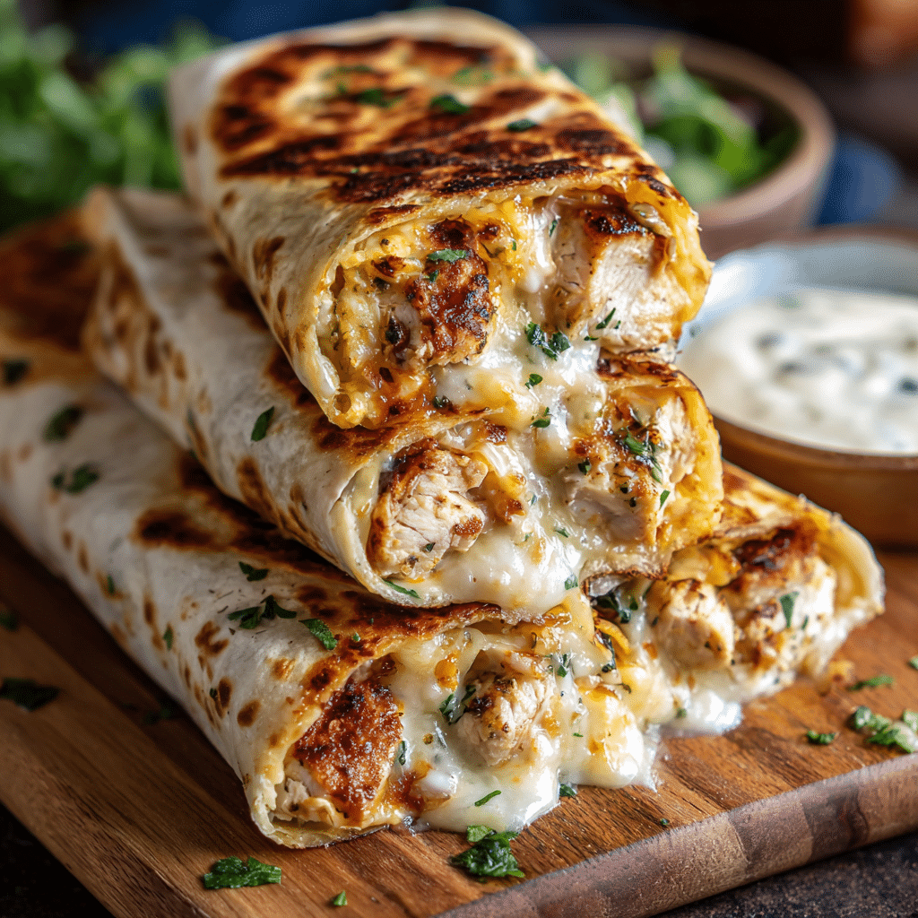 • Cheesy Garlic Chicken Wraps – The Ultimate Flavor Explosion