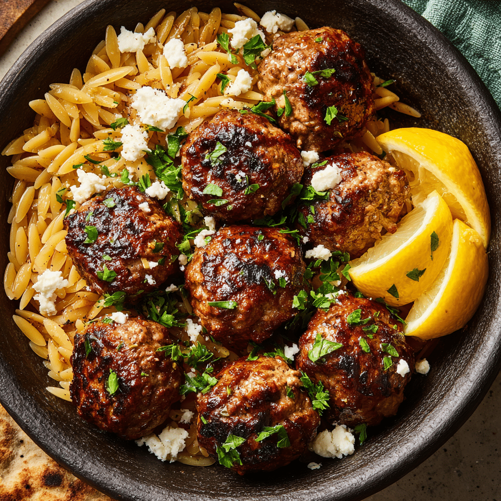 Savory Greek Chicken Meatballs with Zesty Lemon Orzo – Fresh, Bright & Mediterranean-Inspired