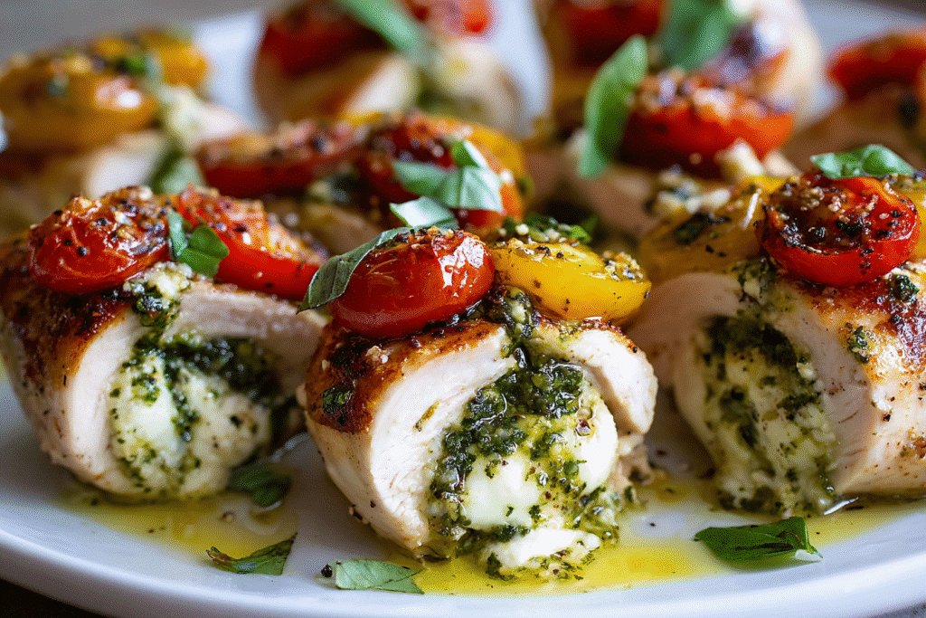 Easy Pesto Mozzarella and Tomato Stuffed Chicken Breasts – Juicy, Cheesy, and Packed with Flavor
