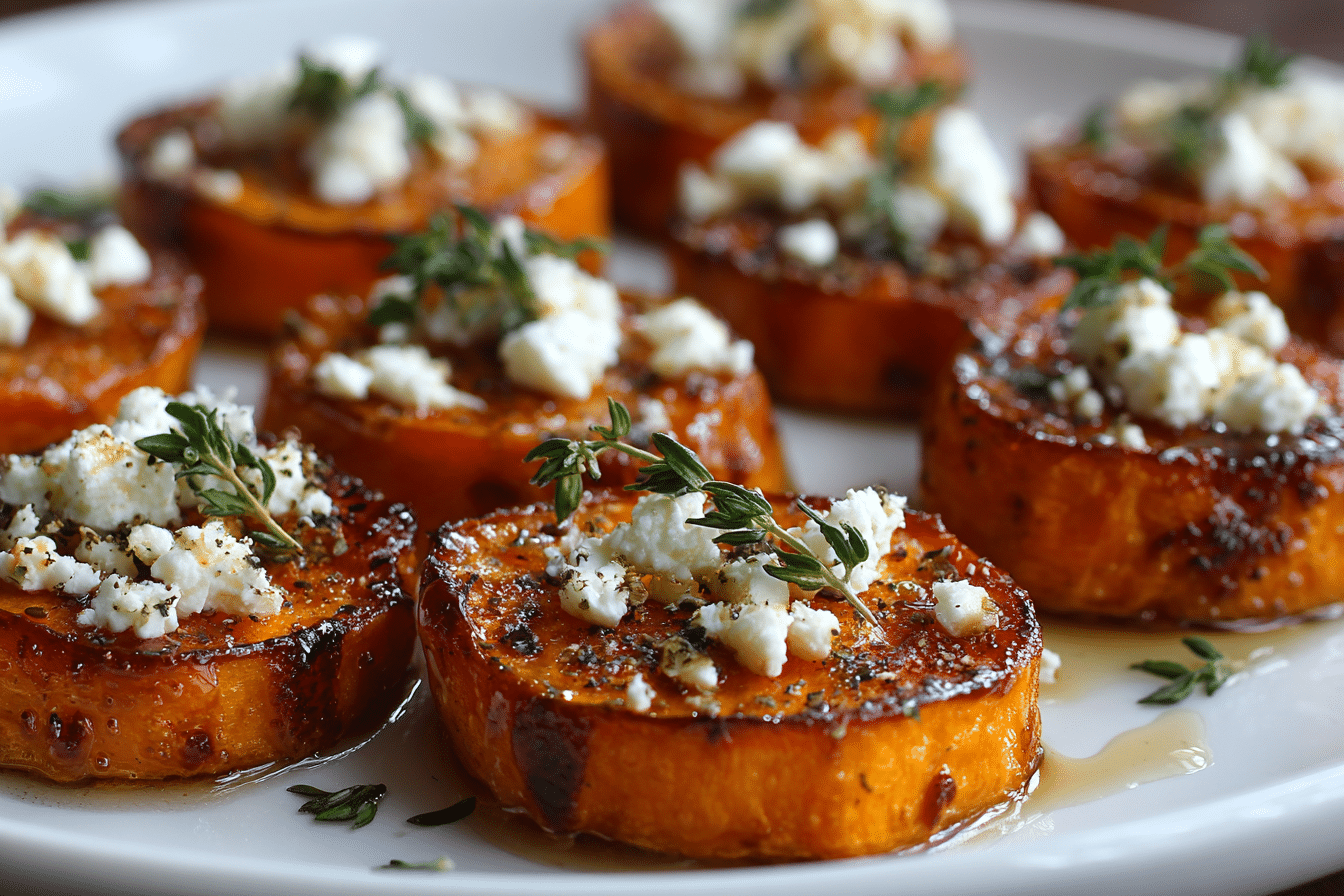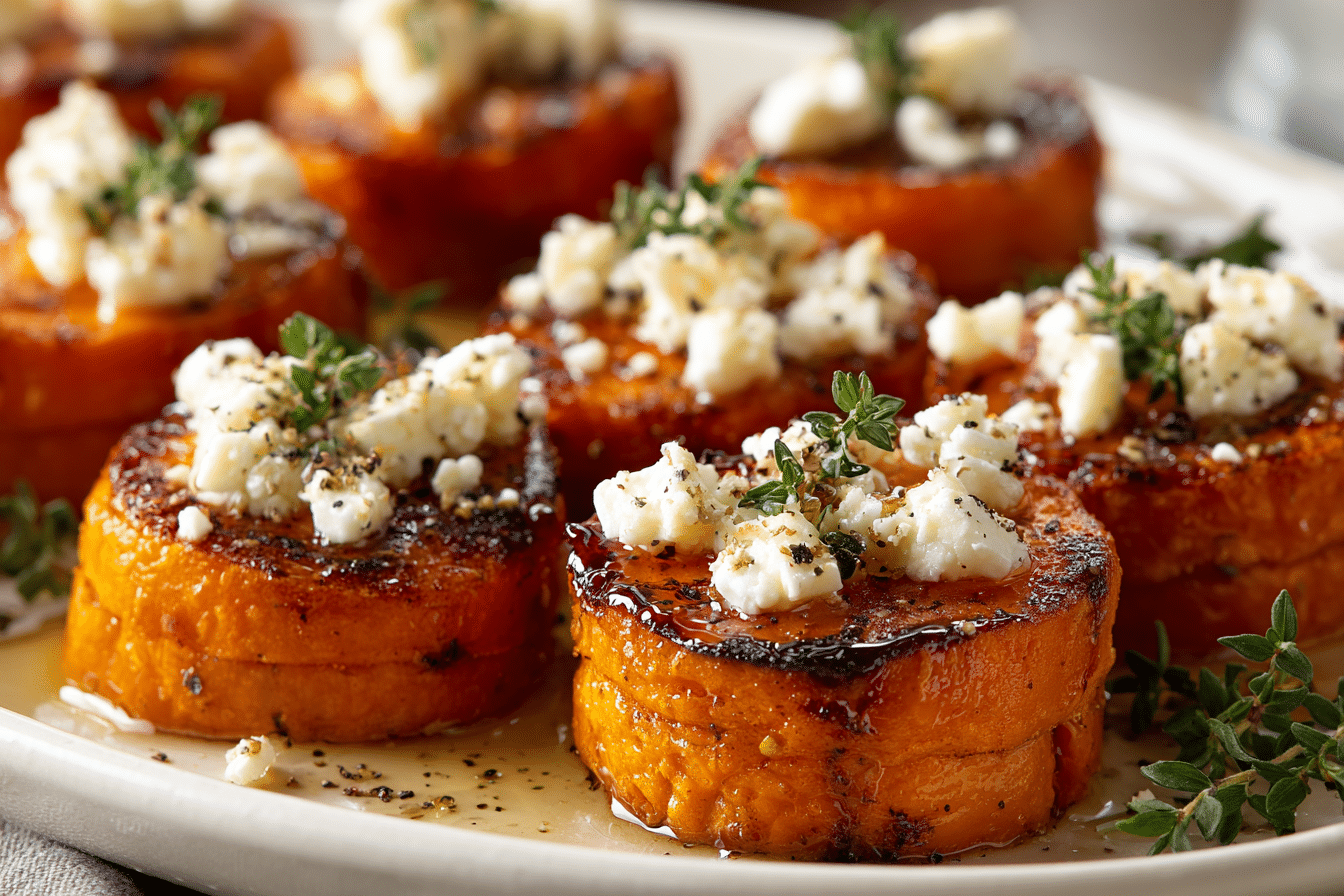 PrintTender roasted sweet potato rounds topped with tangy feta cheese and sweet honey — a flavorful, elegant side dish or appetizer perfect for any occasion.